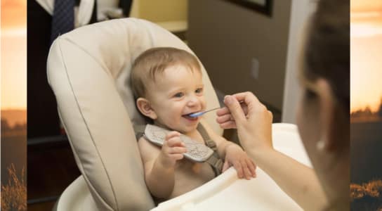 Blend in a blender together with some filtered, fresh water, breast milk, or infant formula milk. (Up to a year). Once a child turns one year old, you can give them various milks such cow’s, soy, oat, or nut milks.